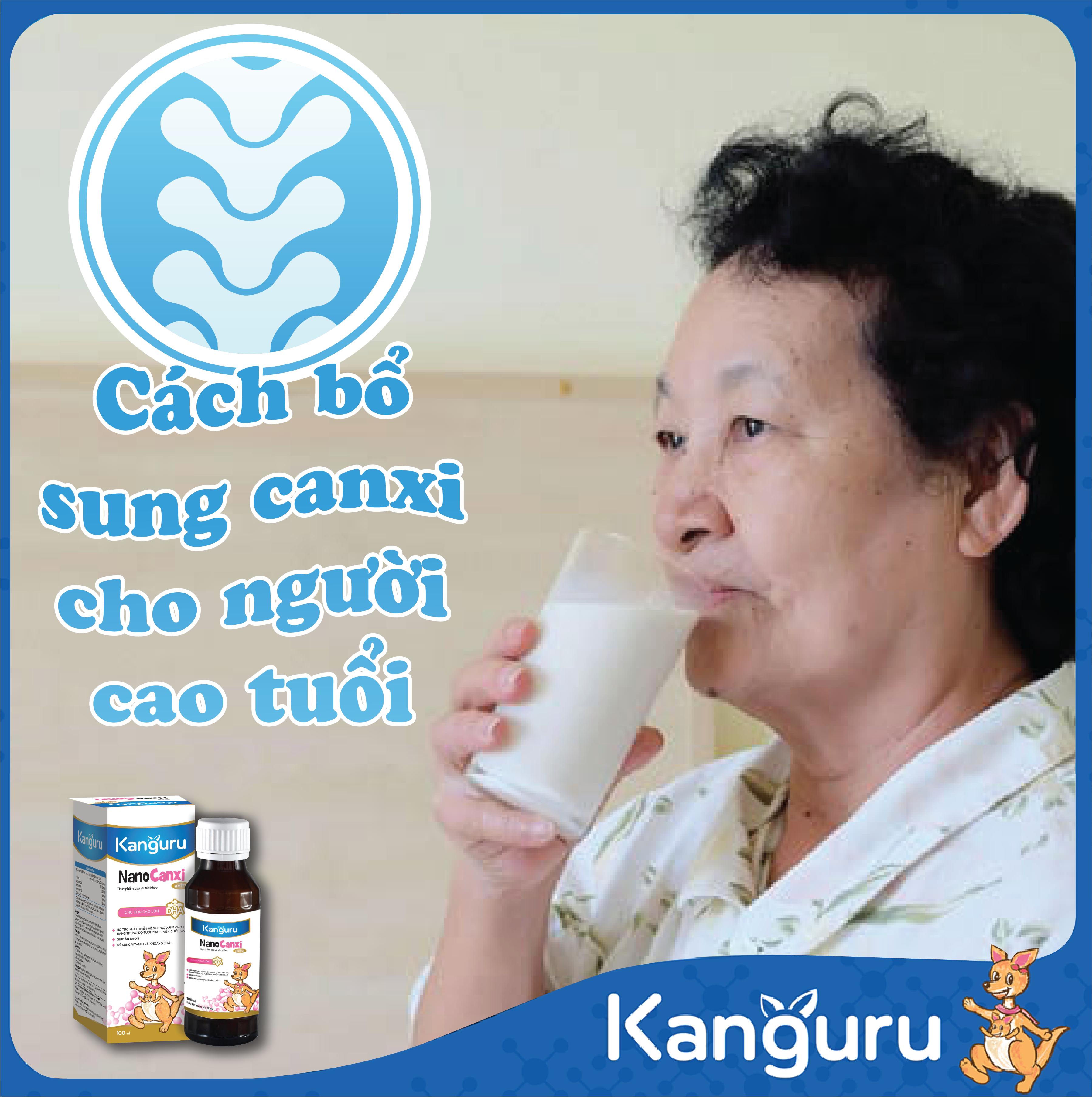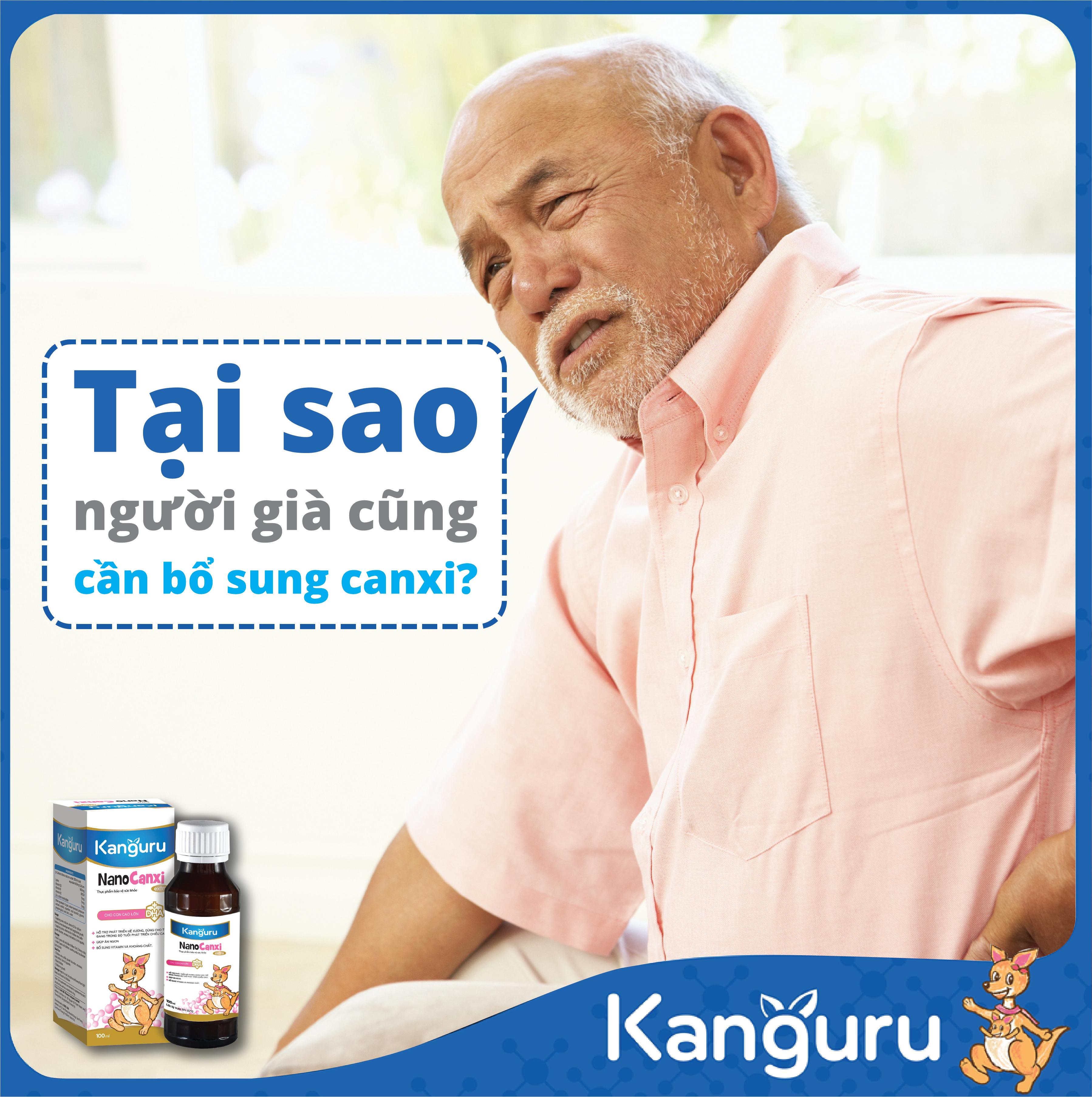 Ngoài ra, do quá trình hấp thu ở người cao tuổi giảm trong khi bài tiết canxi lại tăng lên nên người cao tuổi nên sử dụng thêm các sản phẩm hỗ trợ giúp bổ sung canxi như siro Kanguru Nano Canxi. Công thức vượt trội với sự kết hợp của bộ 3 tối ưu là: Canxi nano giúp hấp thu tốt hơn và hạn chế tình trạng táo bón, sỏi thận; Vitamin D và K2 giúp chuyển hóa các khoáng chất vào tận xương, nhờ đó xương sụn dài ra nhanh, luôn chắc khỏe và dẻo dai. Siro Kanguru Nano Canxi giúp giảm nguy cơ còi xương ở trẻ nhỏ và loãng xương ở người lớn.